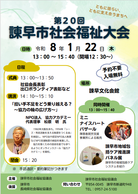 【長崎・リアル開催・無料】1月22日(水)「第20回諫早市社会福祉大会」に松原が登壇します。