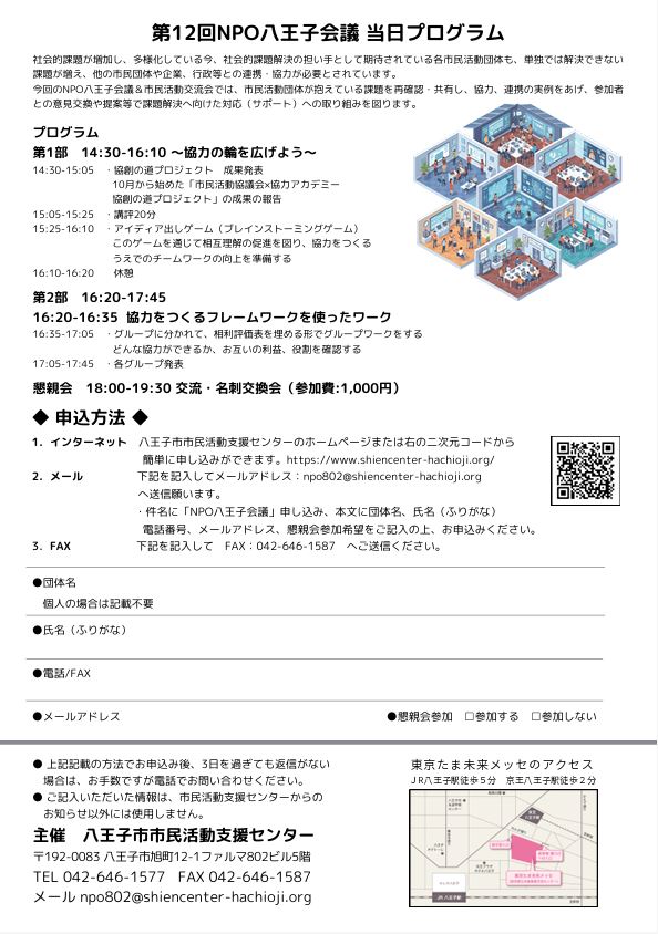 【八王子・リアル開催・無料】2月22日(土)第12回NPO八王子会議&市民活動交流会「協力の作法Ver.2 協力の輪を広げよう」 に松原が登壇します。