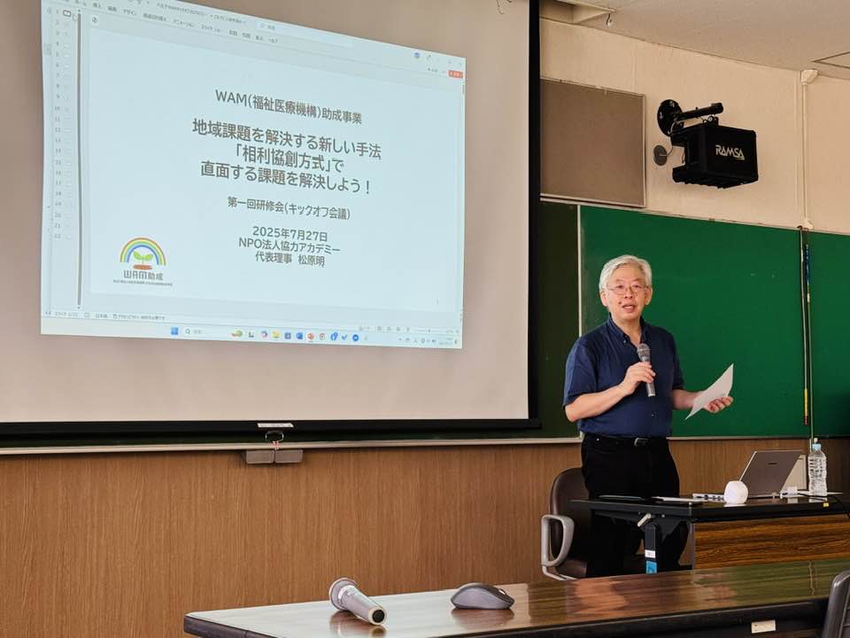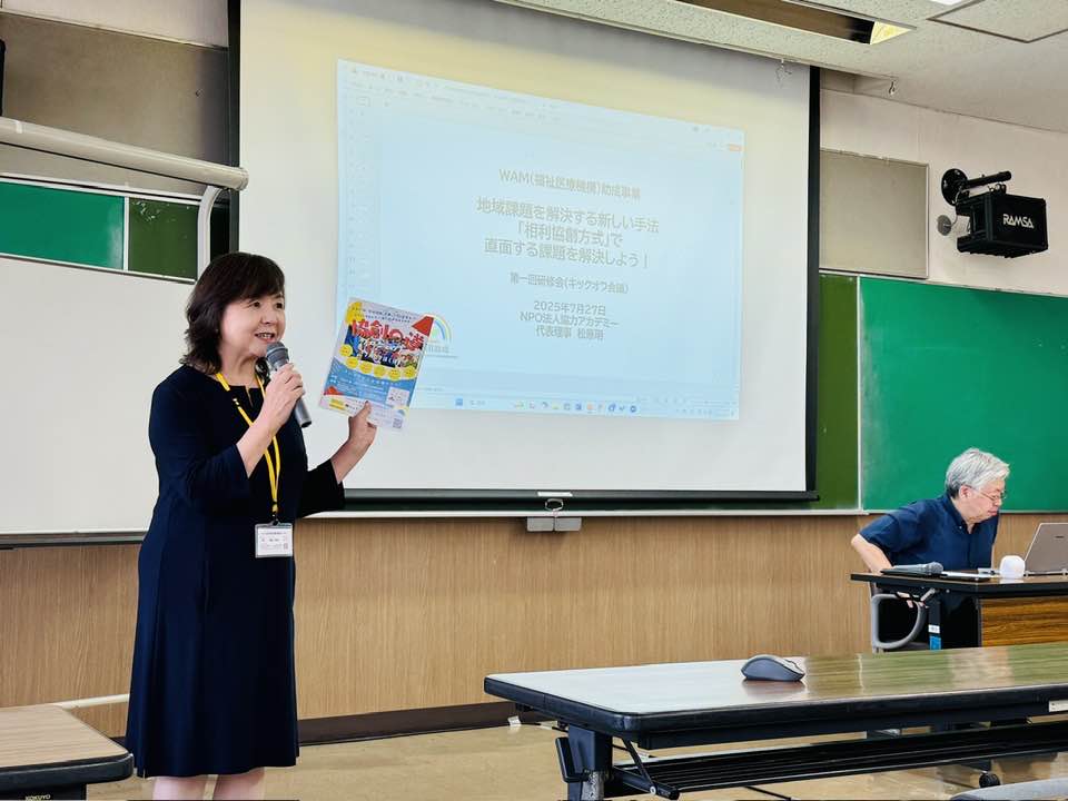 WAMの助成事業で、協力アカデミーが開発した「相利協創方式」の実施パートナー団体を募集する説明会だ。