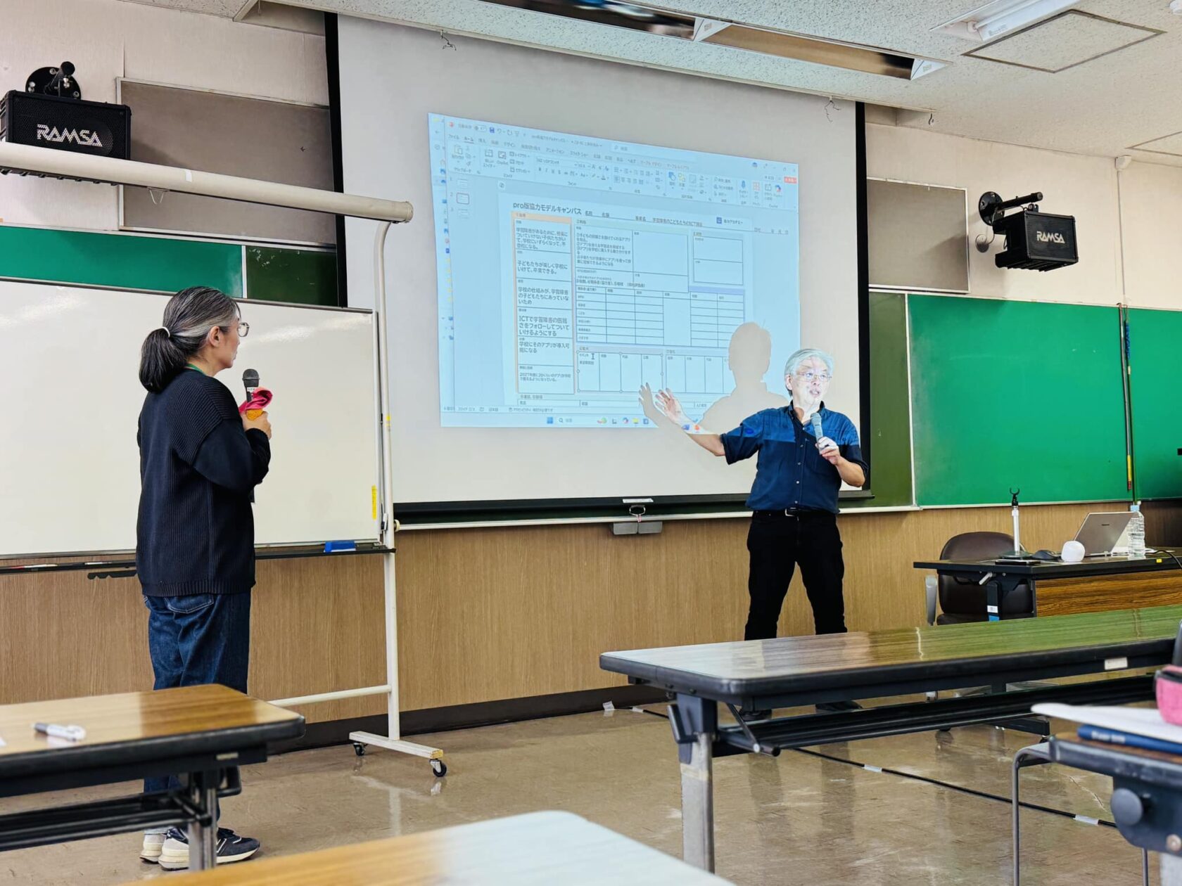 後半は、参加者の一人に協力いただいて、協力モデルキャンバスを即興で構築していく、というライブ実演をしてみせた。